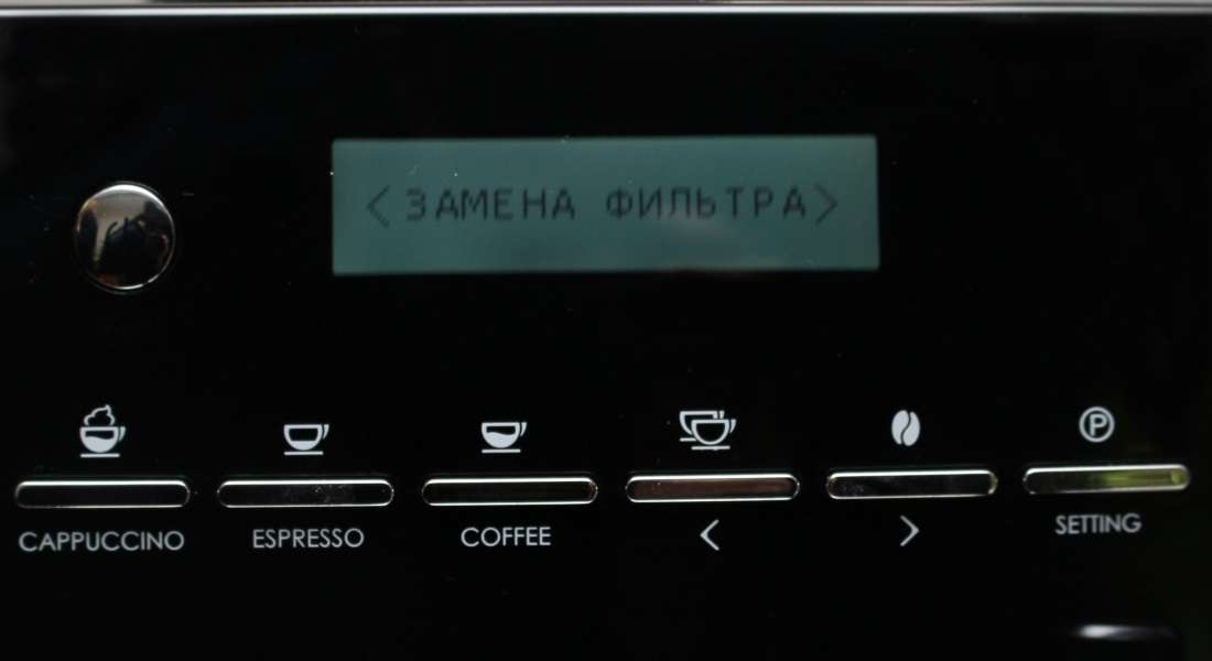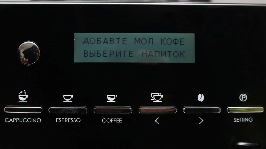 При наполненности бункера отработанным кофе на дисплее появляется напоминание о необходимости уборки.