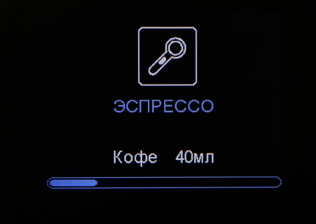 Выбираем 40 мл, дисплей фиксирует наш выбор и уточняет, что наш выбор — эспрессо.