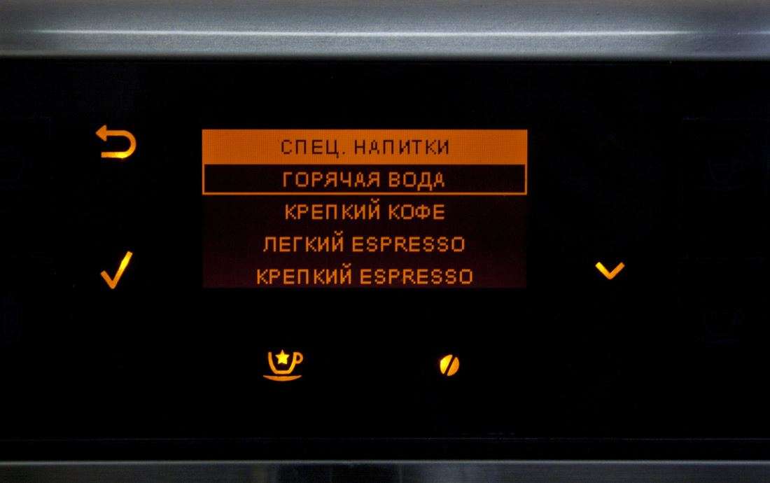 Более редко употребляемые напитки «спрятаны» в меню, для их приготовления нужно войти в соответствующий раздел и выбрать их там.