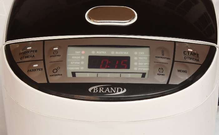 УПРАВЛЕНИЕ: ЖК-дисплей, Меню — для выбора программы, Старт/Отмена, Температура (для Ручного режима), Разогрев, Подогрев, отсрочка старта до 24 ч (кроме Жарка, Ручной, Разогрев), возможность изменения времени приготовления (кроме Крупа и Разогрев), индикация текущего режима, индикация приготовления, обратный отсчет времени приготовления после нажатия кнопки Старт/Отмена (кроме режима Пар). В режиме Пар отсчет времени начинается после достижения температуры кипения.