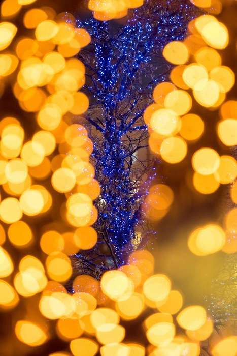 Когда сюжетно важная деталь изображения находится за объектами переднего плана, всегда возникают сложности при наведении на резкость. Если применять большое количество фокусировочных точек, расположенных по центру, фотоаппарат обязательно сфокусируется на самой яркой и контрастной части изображения, в нашем случае это будут яркие лампы желтой электрической гирлянды. Выбрав одну из крайних верхних фокусировочных точек и установив широко открытую диафрагму, можно создать из переднего плана красиво размытое обрамление.