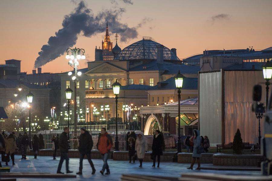 Уже через пять минут небо изменило свой цвет и стало темно-синим, увеличился контраст изображения. В этой ситуации важным фактором стала необходимость не допустить переэкспонирования на освещенных стенах здания Большого театра. Желание сохранить резкость переднего и заднего плана заставила немного закрыть диафрагму, выдержка при съемке с рук не должна была длиннее 1/15 секунды.