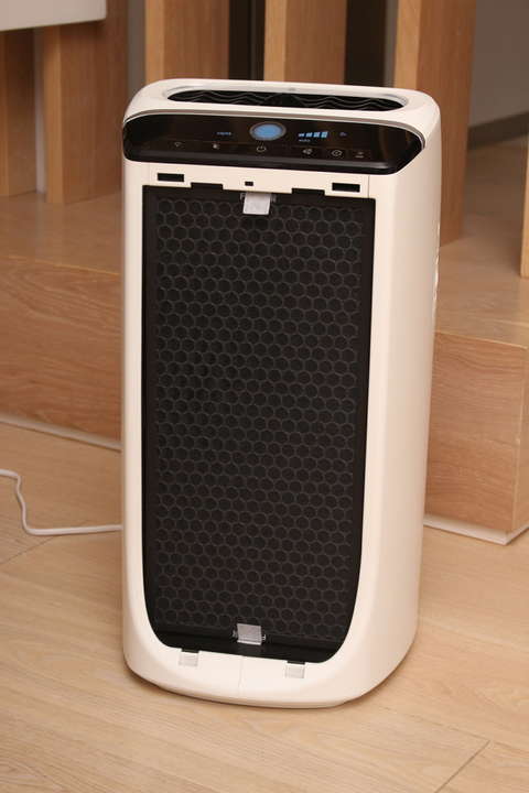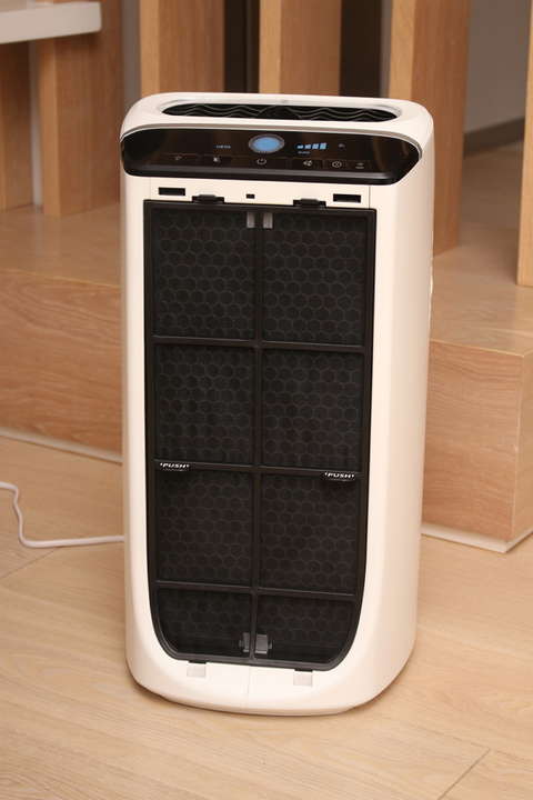 Следуя инструкции, мы устанавливаем воздухоочиститель, оставляя по 50 см свободного пространства с каждой стороны. Решетки входа и выхода воздуха свободны и совершенно чистые. Все фильтры установлены правильно. Прибор включаем в сеть. Так как в данной модели есть датчик частиц (расположен в правой стороне корпуса), определяющий степень загрязнения воздуха, ориентируемся на автоматический режим и цветовой индикатор: синий – качество воздуха отличное, фиолетовый – среднее, красный – плохое.