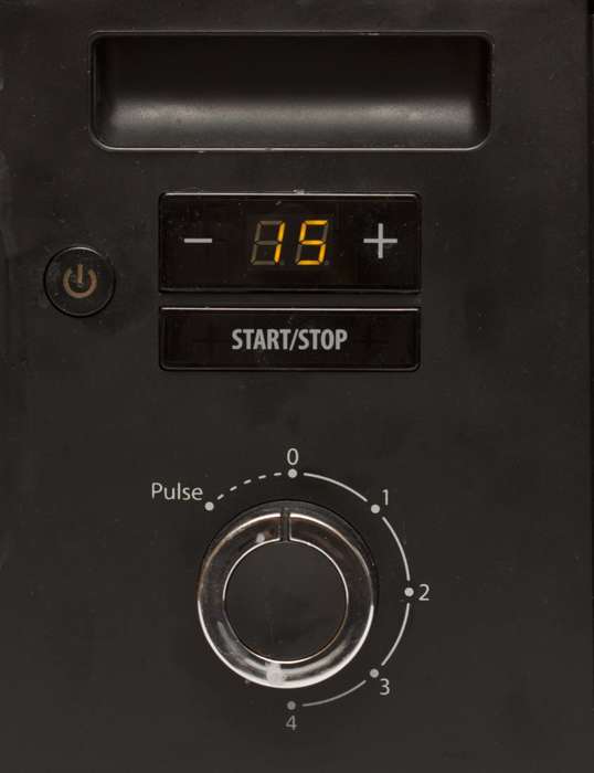 Во втором случае работой управляет поворотный переключатель – можно выбрать одну из четырех скоростей вращения ножа в чаше или импульсный режим (крайнее левое положение регулятора).