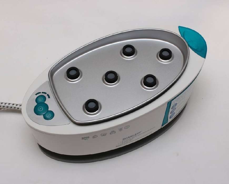 ПОДОШВА: GlissAir, нержавеющая сталь, увеличение на 30% количества паровых отверстий (по сравнению с другими подошвами утюгов Scarlett). Длина — 19,5 см, ширина — 10,7 см.