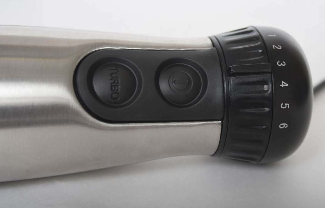 Поворотный переключатель скоростей расположен наверху основного блока, причем переключить режим довольно просто даже во время работы: у нас это легко получилось.