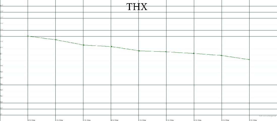THX — наверное, показал самый лучший результат. Все точки, как воробьи на проводах, кучно уселись на доверительный интервал. В этом режиме цветовая температура наиболее близка к 6500К.