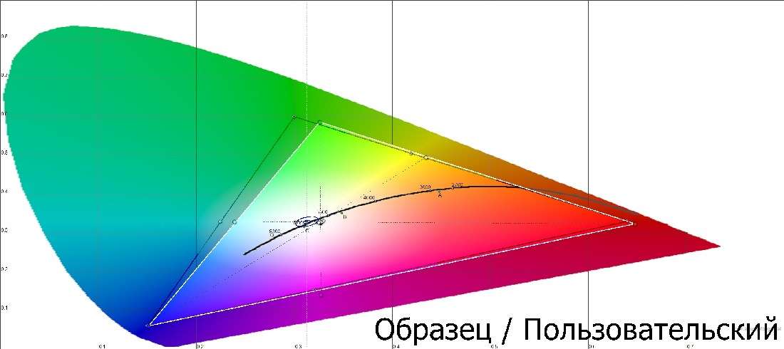 Пользователю предлагается стандартный цветовой охват, который очень неплох в области синих и красных тонов. А вот зеленые тона несколько смещены, «зеленые человечки», может, и останутся не очень довольными, но обычные пользователи особого дискомфорта не заметят…
