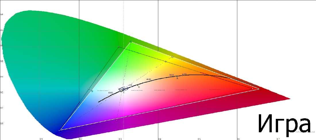 Режим имеет также расширенный цветовой охват и очень близкую к референсной цветовую температуру — 7000К. Неожиданный результат, обычно в игровых режимах используется более холодная температура.