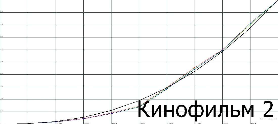 Гамма-кривые ведут себя примерно так, как в режиме Кинофильм 2, только еще с большим прогибом в области 50 процентов. Как результат, мы получим глубокие тени, очень высокий контраст в средних тонах, но деталей в темных и светлых участках изображения будет меньше, чем в других режимах.