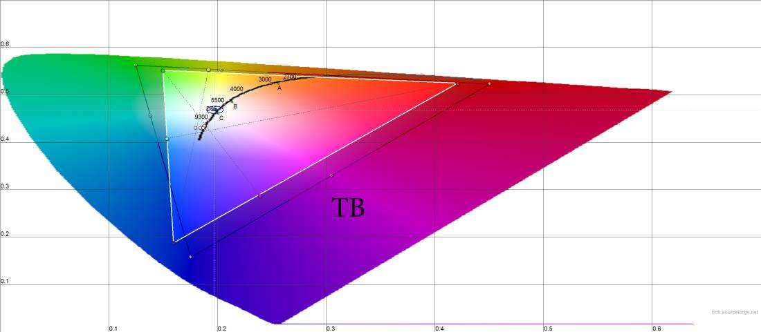 Главный вопрос: насколько цветовой охват закрывает «подкову» CIE –диаграммы и как круто смотрится на фоне треугольника sRGB? Теперь мы готовы ответить на ключевые вопросы.