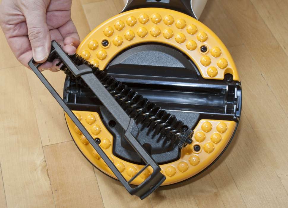 Мы проверили, насколько легко работать пылесосом. Удивительно, но кисть не устает вообще – видимо, настолько выверено расположение центра тяжести. Когда держишь пылесос в руке, вибрация совершенно не чувствуется, но если прикоснуться ладонью к рабочей поверхности, то она отчетливо ощущается.