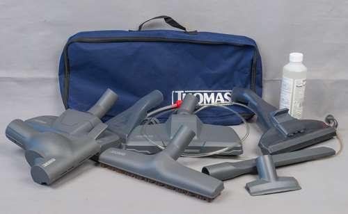 КОМПЛЕКТАЦИЯ: переключаемая насадка «пол-ковер», насадка с щетиной из натурального волоса для паркета и ламината, насадка «Аква Стелс» с 2 «подушками» из микроволокна для влажной уборки паркета и ламината, турбощетка для мягкой мебели, насадка для мягкой мебели с нитеподъемником, щелевая насадка увеличенной длины (360 мм), распыляющая насадка для влажной уборки с адаптером для ковровых и твердых поверхностей, распыляющая насадка для влажной очистки мягкой мебели, концентрат THOMAS ProTex для чистки ковров, фирменная сумка для хранения принадлежностей.