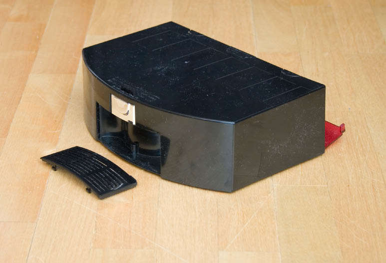 Пылесборник. Плоский пластиковый контейнер, выдвигающийся нажатием специальной клавиши. Форма и конструкция таковы, что можно удерживать его одной рукой и вытряхнуть все содержимое в ведро, не испачкав руки.
