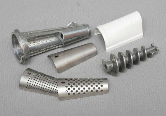 Приставка-соковыжималка с тремя решетками (с крупными и мелкими отверстиями и без отверстий – для приготовления колбас или фруктового пюре).