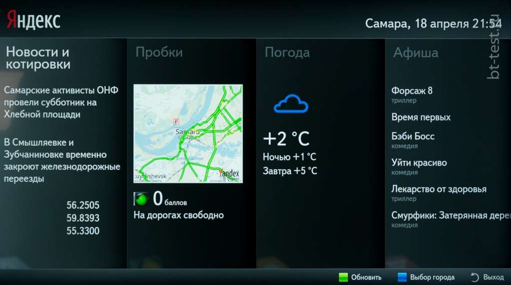 Обычных приложений на OperaTV, пожалуй, будет побольше, чем в Смарт-ТВ на WebOS и Linux, но изобилие Android, конечно же, остается не досягаемым. OperaTV предлагает с видного места воспользоваться поиском в Яндексе, приложениями для домашнего кинотеатра, тут же – подборка новостей, отдельный раздел для детей и другие востребованные темы. Единственное, что может оказаться в дефиците – это приложения для просмотра IPTV, предоставляемого местным провайдером.