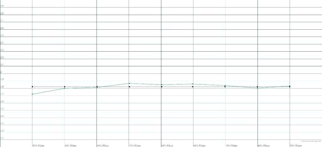 Тестовые замеры показали, что все три режима различаются между собой только цветовой температурой. Цветовой охват и гамма остаются неизменными. Измерения подтвердили мое визуальное впечатление об отличной цветопередачи. Треугольник цветового охвата, представленный на графиках, во всех трех режимах близок к идеальному. Это означает, что матрица способна воспроизвести почти все цвета, существующие в этом пространстве, что является большой редкостью даже для более дорогих моделей.