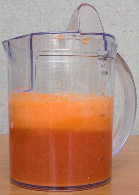 Итого мы приготовили 610 г сока с пеной. После процеживания чистого сока без пены получилось, конечно же, меньше: 536 г сока из 1063 г общей массы исходного продукта.