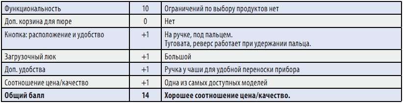 Удобная ручка для переноски соковыжималки заметно повышает мобильность прибора. Рабочие характеристики у модели такие же, как у многих в этом тесте. Сок легко отжимается из самых разных продуктов. Жмых получается очень сухим. Низкая цена делает эту модель доступной для большинства потребителей.
