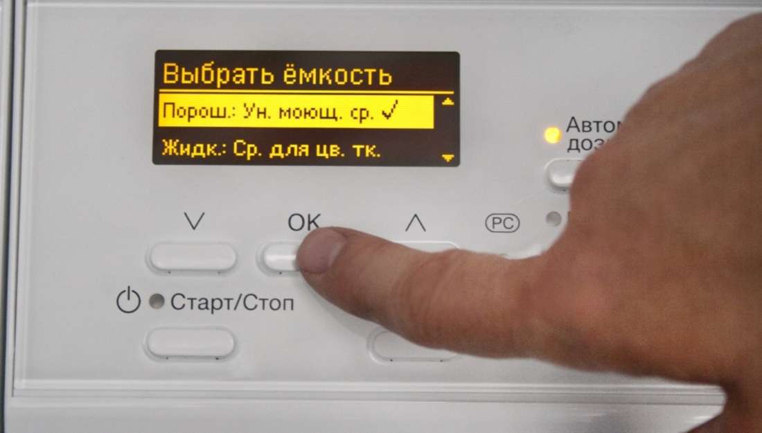 В качестве моющего средства мы использовали фирменный порошок Miele для белых вещей. Спустя несколько минут после включения, машина направила в AutoDos поток воды. Все произошло очень быстро, по моим ощущениям, порошка в емкости меньше не стало, но пены при стирке было много.