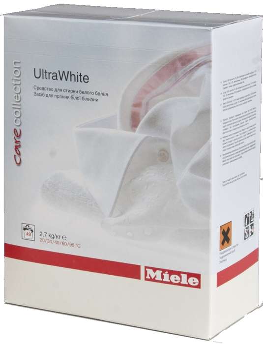 Компания предлагает набор собственных средств по уходу за вещами – CareCollection. Они продаются в Miele-Галереях и в других магазинах, где можно приобрести стиральные машины Miele. Суперконцентрат для белого и светлого белья, который мы использовали в тесте, стоит 1100 руб., упаковка 2,7 кг, расход примерно на 42 стирки. Цена одной стирки 26 руб. (на 5 кг вещей достаточно 40-50 мл средства, то есть около 2 столовых ложек).