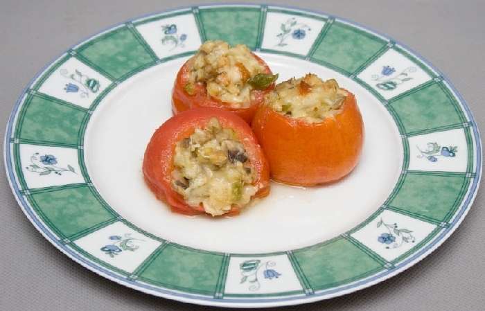 1. Фаршированные помидоры – режим гриля, мощность 1020 Вт, 6 минут.