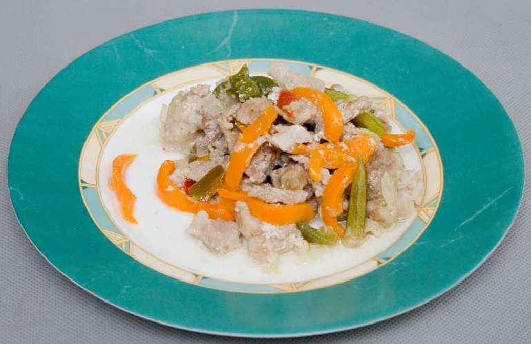2. Свинина с овощами в сливочном соусе – режим микроволн, мощность 100%, 10 минут; режим микроволн, мощность 50%, 10 + 5 минут.