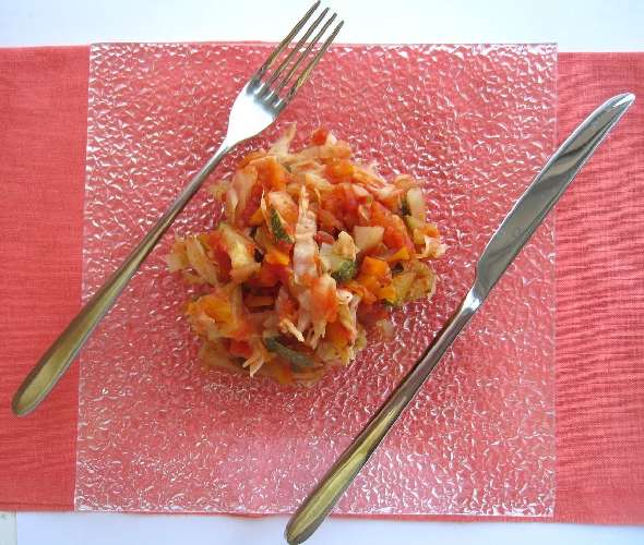 Это блюдо из вариаций овощного рагу. Мы добавили в блюдо капусту, так как для россиян это привычный овощ, который есть в каждом доме. Блюдо получилось вкусным, сочным и понравится всем любителям низкокалорийного здорового питания.