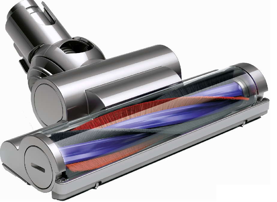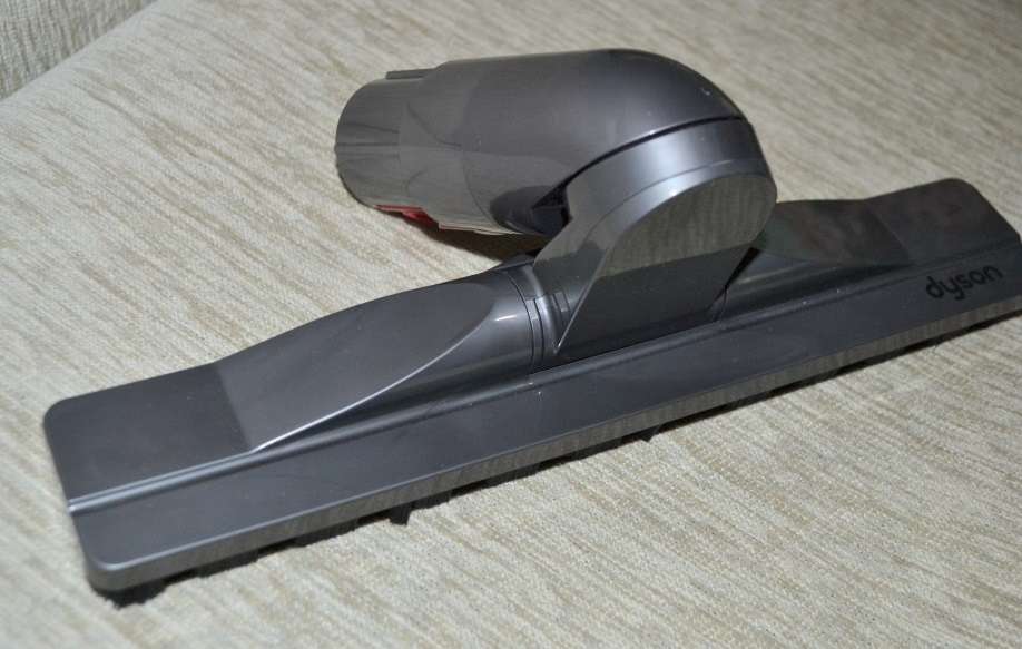 Нужно сказать, что и тут Dyson нас победил. Он влез во все углы скрытого пространства. Щетке активно помогает и гибкое крепление на ручке: трубу со щеткой во время уборки можно положить плашмя на пол, при этом пылесос активно работает и собирает пыль. Очень впечатляет!