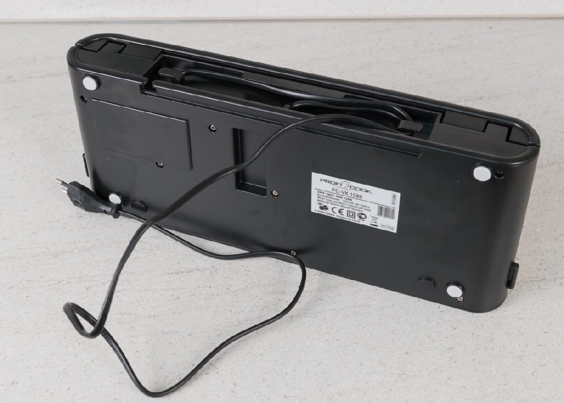 КОНСТРУКЦИЯ: корпус с отделкой из нержавеющей стали, покрытый тефлоном нагревательный элемент (проволока), место для хранения шнура в корпусе, нескользящие ножки, механические кнопки-деблокираторы крышки.