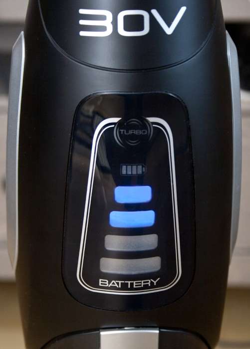 Отсутствие индикатора уровня зарядки на корпусе пылесоса. То есть если вы не помните, когда примерно подзаряжали его, то во время уборки он может преподнести сюрприз, разрядившись.