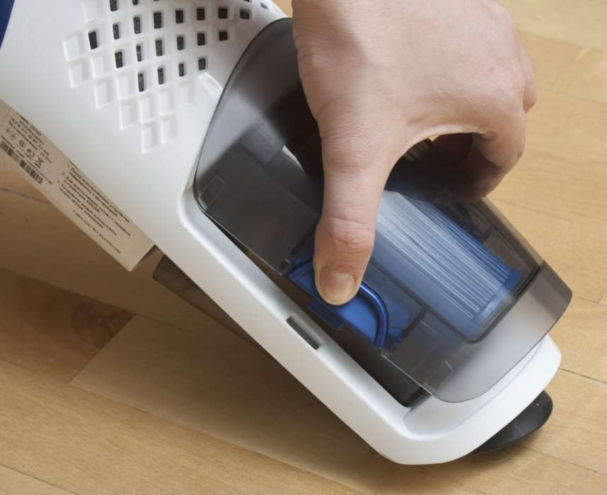 Чтобы отсоединить ручной пылесос от основного корпуса, нужно просто нажать на кнопку.