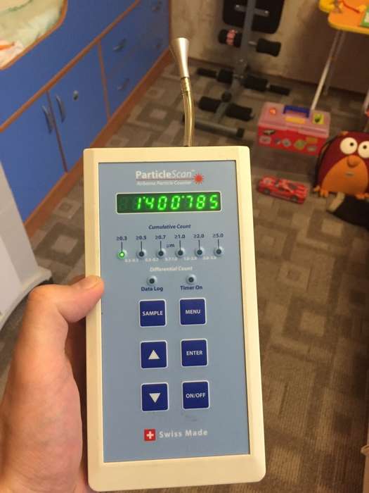 Воздухоочиститель переехал в мою спальню и работал там в течение 5 дней. Числа на приборе измерителя загрязнения воздуха уверенно перекочевали из восьмизначных в пятизначные и четырехзначные. Было интересно оценить не только объективные показатели, но и ощущения родных мне людей — невольных участников теста.