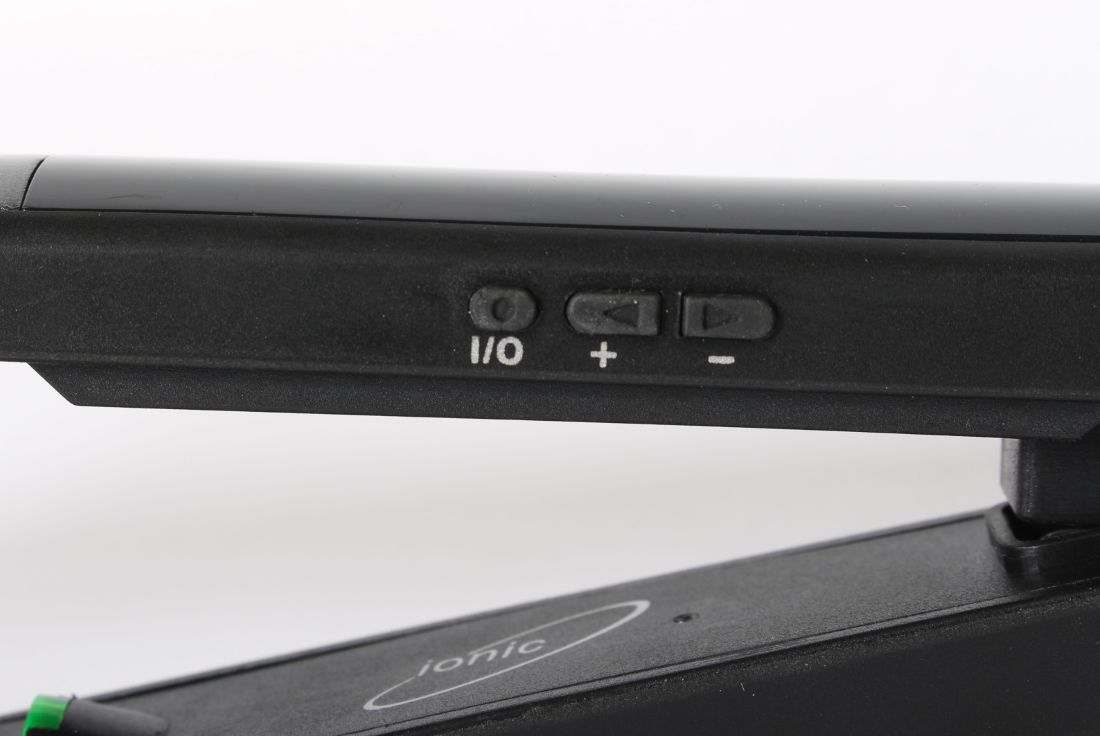 УПРАВЛЕНИЕ: кнопка включения, кнопки «+» и «-» точной настройки температуры (60-190°С), световой индикатор ионизации, светодиодный дисплей.