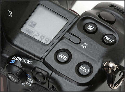 Для пользователей одной из альтернативных систем требуется немного переучиться, чтобы нажимать все-таки кнопку спуска, а не кнопку коррекции экспозиции, как у меня получалось в первый день. На небольшой верхний дисплей выводится мало информации, невозможно сразу, не нажимая кнопок, понять, в каком режиме съемки, автофокуса или баланса белого находится фотоаппарат.