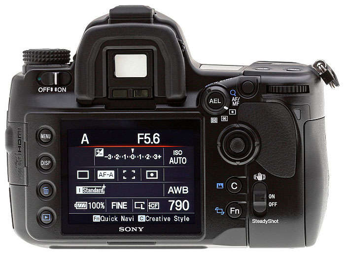 Все сразу можно увидеть только на большом цветном дисплее, качество которого великолепно. Еще более великолепен видоискатель, отображающий все 100% кадра, и пентапризма, очень светлая и пригодная для ручной наводки на резкость даже с темными объективами.