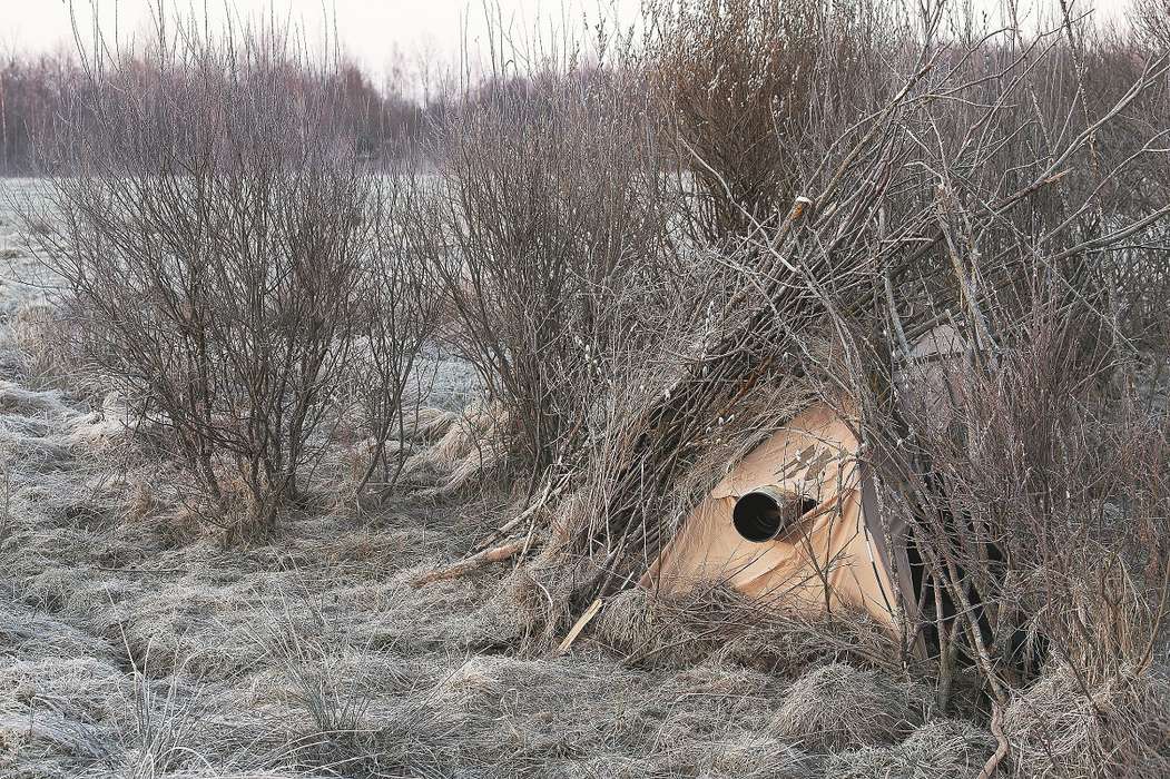 «Боевая позиция». В такой засидке фотографу приходится проводить довольно много времени, причем выход на съемку долженбыть сделан еще до рассвета. Раннее утром ISO 400, f7,1 и 1/40c.