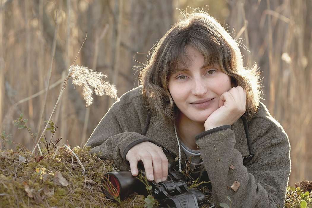 Орнитолог заповедника, кандидат биологических наук Оксана Шемякина, мой проводник в мире птиц и болот. Милая девушка и замечательный увлеченный ученый. Объектив Sony 70—400, фокусное расстояние 160 мм, ISO 200, f5,6, 1/100 c, применен стабилизатор изображения Super SteadyShot, контровой свет без применения бленды, демонстрация высочайшего качества оптики.