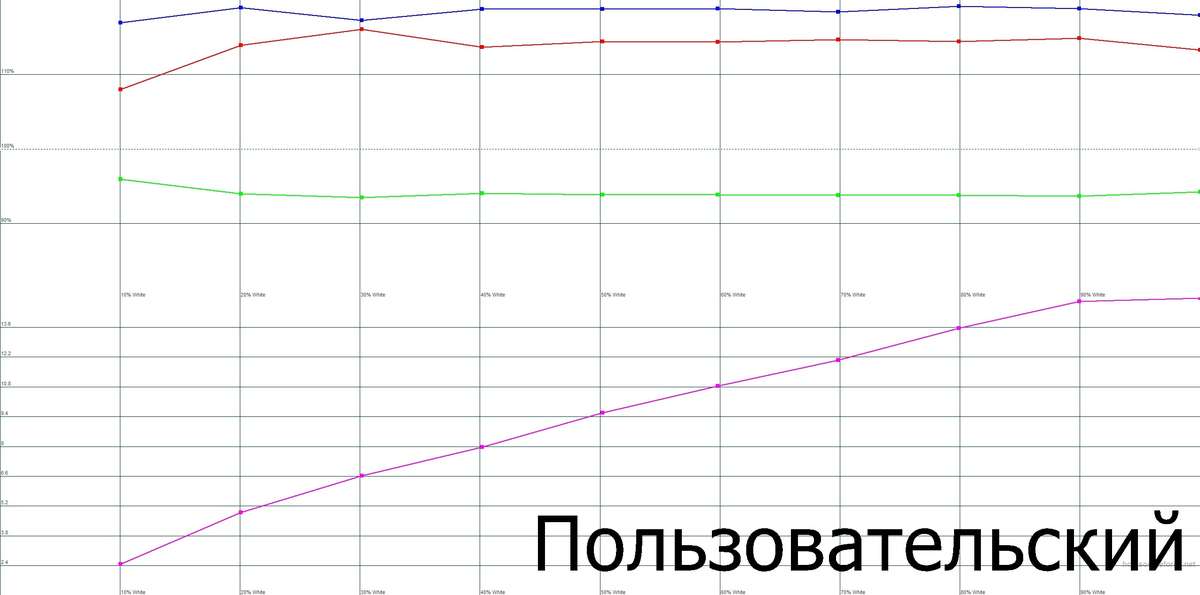 Невысокий цветовой охват, для большинства заводских профилей характерна прохладная цветовая температура.