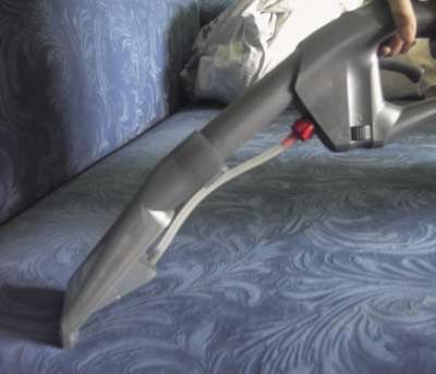 Для этой процедуры в арсенале предназначена насадка для влажной очистки мягкой мебели. Она более узкая, чем насадка для пола, и крепится непосредственно к рукоятке, телескопическая труба в данном случае просто не нужна.