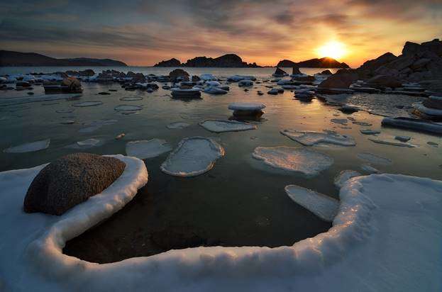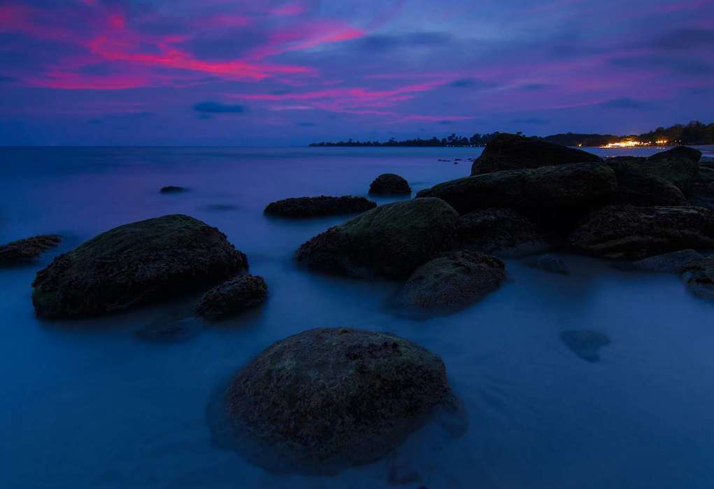 Каменистая гряда, убегающая в море, призвана оценить точность цветовой температуры и насыщенность цветов. Изображение само по себе изначально теплое, если проектор или монитор делает его еще теплее – это сразу хорошо видно. Если холодит, то изображение получается не атмосферным, не настоящим.